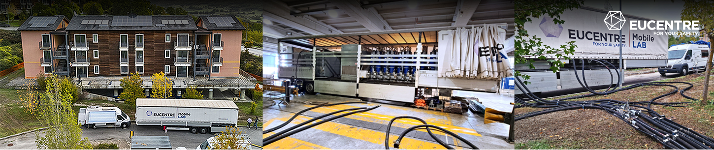 The Eucentre Mobile Laboratory is a unique testing system that allows dynamic tests to be performed directly on existing buildings, bridges, infrastructure or soil on site. It is a fully autonomous system housed in an articulated truck and equipped with all the necessary components for independent operation, even in complex environments or remote locations.